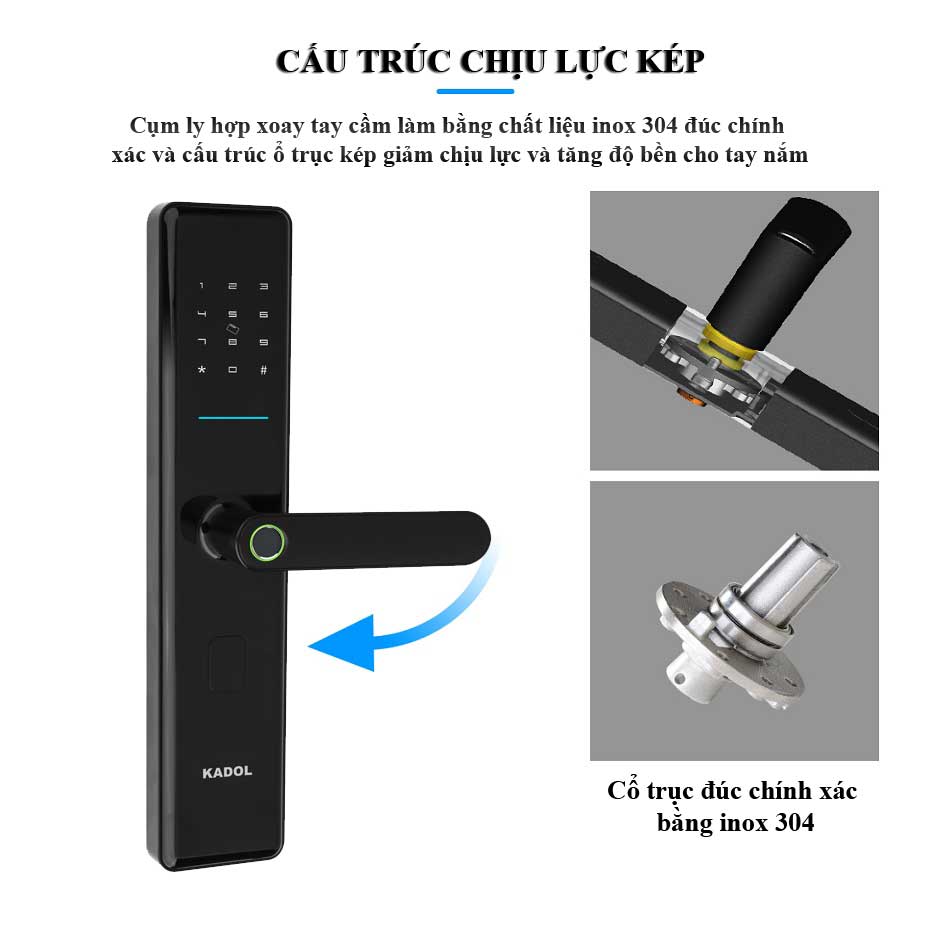 Kadol FP19 có cơ khóa với 5 chốt an toàn. Chất liệu inox304 siêu bền bỉ